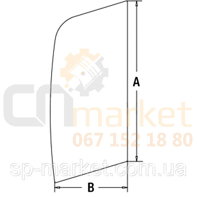 Стекло двери верхнее переднее фиксированное для колесных и гусеничных экскаваторов. HITACHI, JOHN DEERE