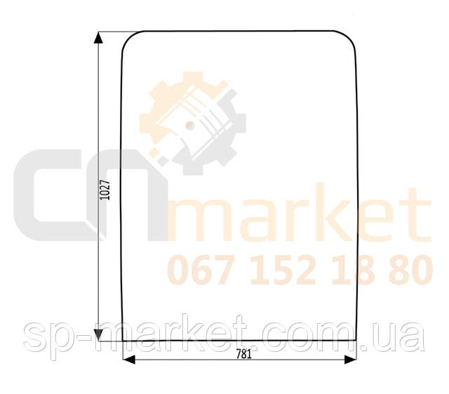 Ламинированное лобовое стекло верхнее (безопасное/закаленное) для колесных экскаваторов.